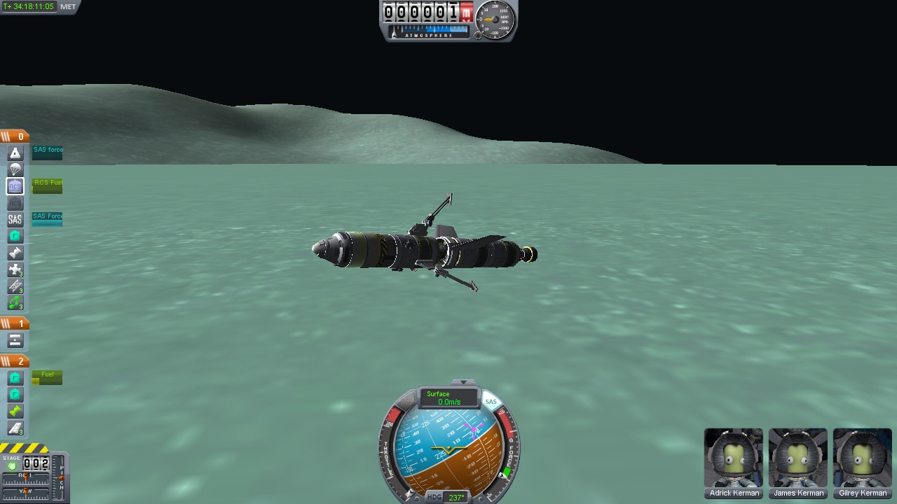 | Дотащился я таки до Мунмуса на глупской неотработанной конструкции и после двадцати дней болтания на орбите. Да еще бездарно разбил ее потом о поверхность. В следующие разы есть идея отработать использование гравитационного маневра Муны для того чтобы попасть на Мунмус.