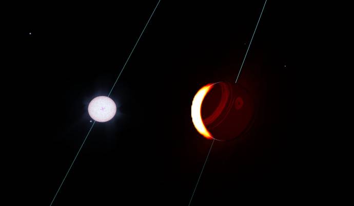 Коричневый карлик на орбите вокруг белой звезды главной последовательности - Баг с освещением карлика (сторона повернутая к звезде светится ярче самой звезды и всячески глючит,меняя цвета, то появляясь, то исчезая!!! P.S: Реальная яркость выключена
